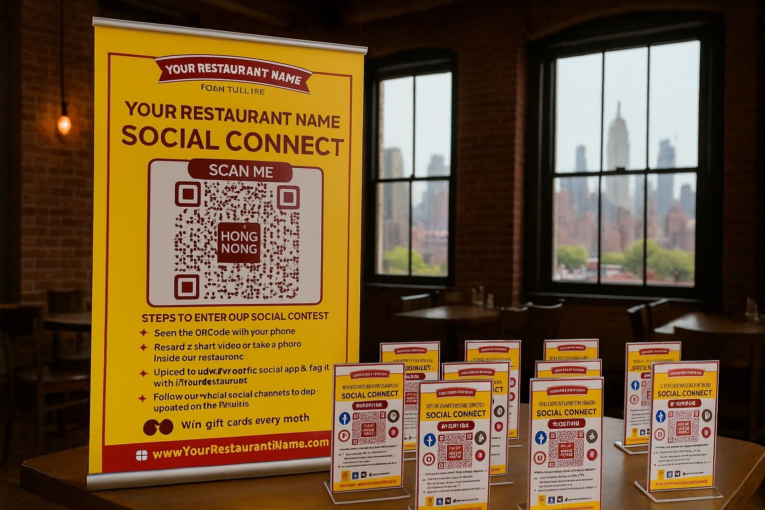 Designed, printed, and delivered to your restaurant. - Your Social Connect QR App (with full menu)